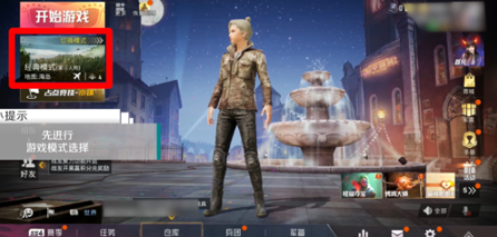1、点击打开和平精英,然后登陆账号。点击左上角的游戏模式选择选项。