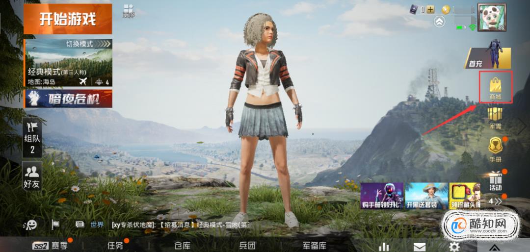 打开和平精英app,进入游戏页面后,在页面右侧找到并点击【商场】。