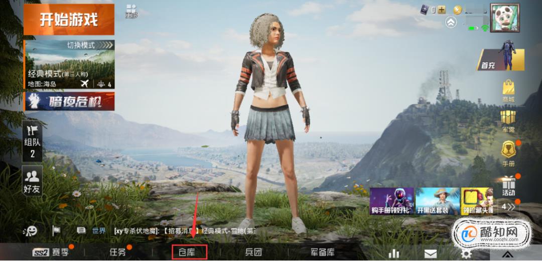 接着我们回到刚才的游戏主页面,在下方的功能区找到【仓库】,点击进入。